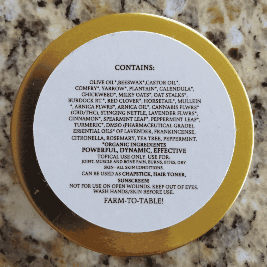We were tired of buying a cabinet full of all the watered down and overly simple salve products designed for only one or two purposes. Our robust and inclusive recipe of ingredients covers nearly the whole spectrum of derma and topical uses. From sun burns to rashes, broken bones to hair toner, arthritis to chap stick, we’ve got you covered. Can even be liberally applied on face (will not clog pores!) This is the only salve you’ll ever need to carry with you again! Were so confident in its effectiveness, we offer a no questions asked guarantee on your satisfaction with this product.